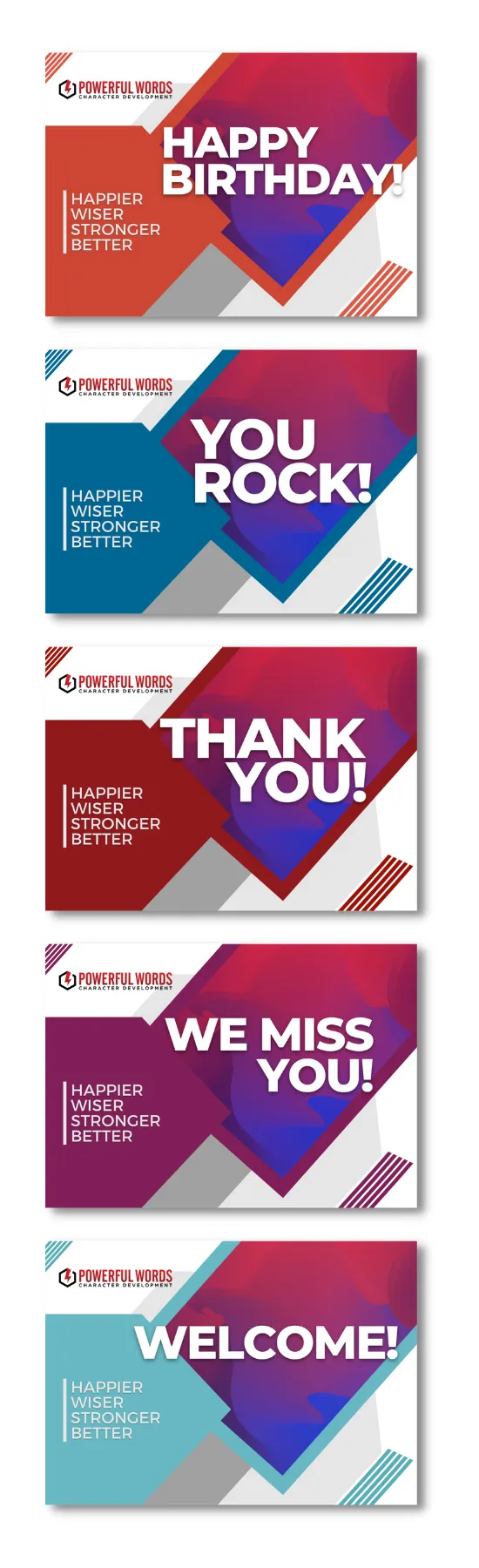 How would you like 5 different PROFESSIONALLY DESIGNED Post Cards to help you build the most loyal student base in the world? We’ve already done it for you! (NOTE: The back of the card is basically blank, there’s a placeholder for a stamp, and a dividing line that separates the area you write in from the student’s address)